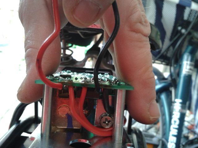 2 Rote Kabel kommen von der Platine vorne wo auch das Kabel für