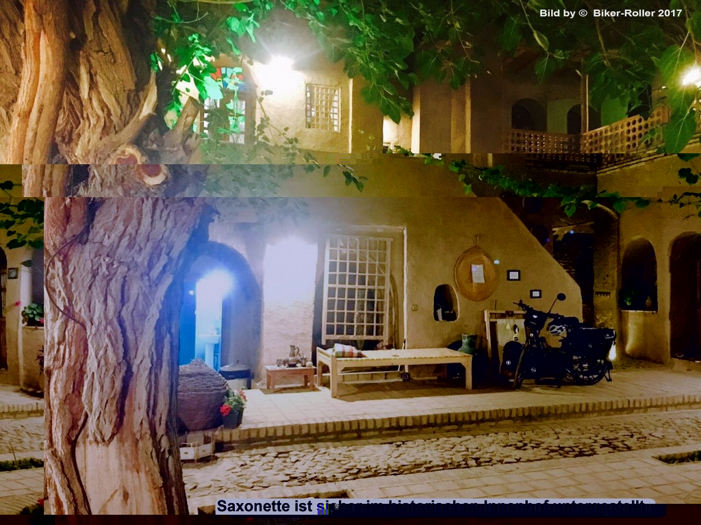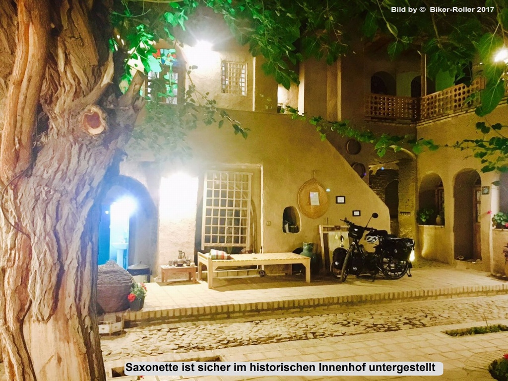 . . .noch ein Nachzügler das Bild von der Fahrt nach Qom : . . . hier steht die Saxonette im Hinterhof : Gast Haus in Natanz :Bericht Michael :