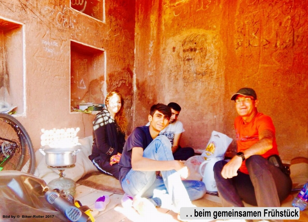bin in einem historischen Haus untergebracht. Gestern war Camping mit der iranischen Radlerfamilie angesagt,