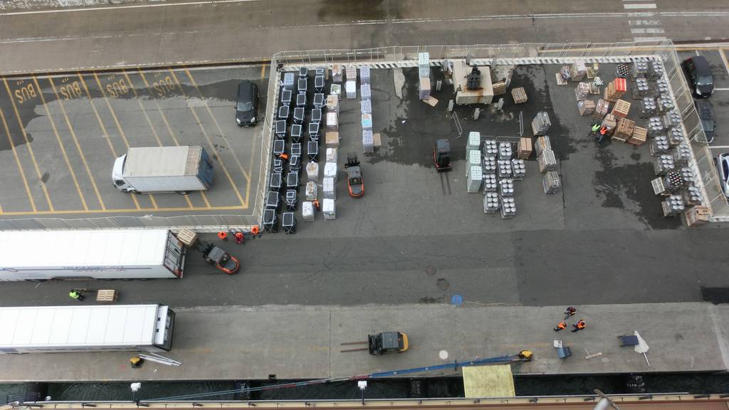 . . . und auf der Fahrt nach Barcelona haben wir gesammelt uns einen Grill und 10 Rinder auf's Pooldeck liefern / heben lassen