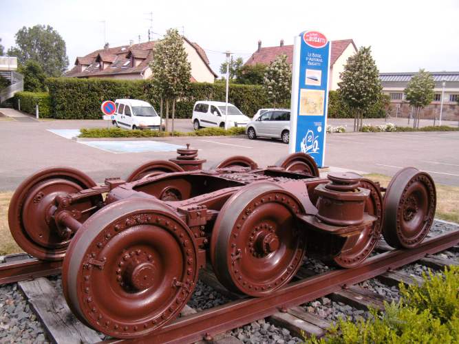 Dies ist ein Eisenbahnfahrgestell womit  man 1930 schon über 200Kmh fahren konnte , Bugatti hielt damit mehrere Weltrekorde.
