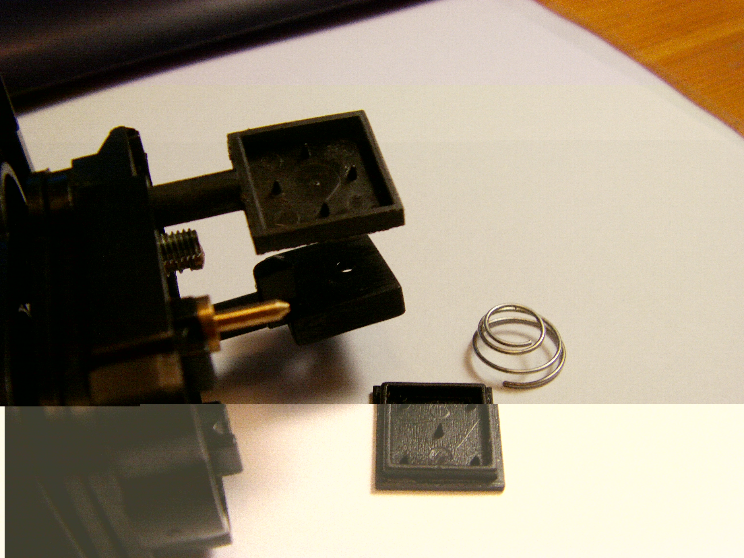 Alternativ kann ab Werk auch statt einer Druckfeder ein Schwämmchen drin sein. Die Feder verklemmt sich zudem zwischen den Pins und stellt seine Funktion dann auch ein, weil sie durch die Pins verbogen war.
