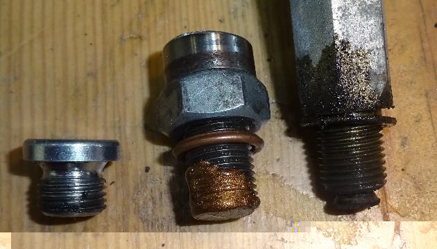 Man kann auch eine ausgemusterte Sachsonettenachse nehmen, Mit der Flex, oder wenn nicht so hart, mit einer Metallsäge absägen, Mutter fest draufschrauben, auf Länge 11,5 absägen, Gewindeenden schleifen . Kufperdichtring draufstecken, am besten noch Kupferpaste drauf.