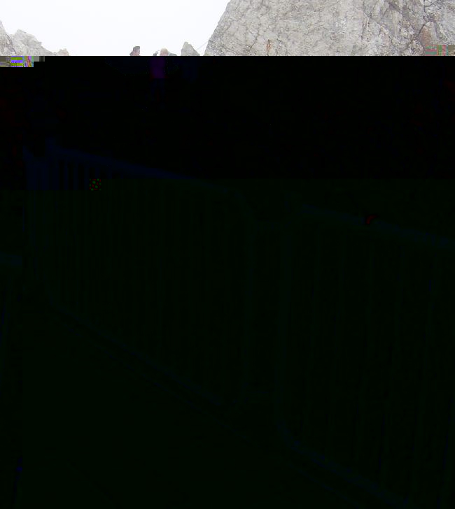 das Bild ist dort entstanden, wo man auf dem 360° Zugspitzgipfel-Panorama die Fusspuren zum Gipfelkreuz sehen kann.