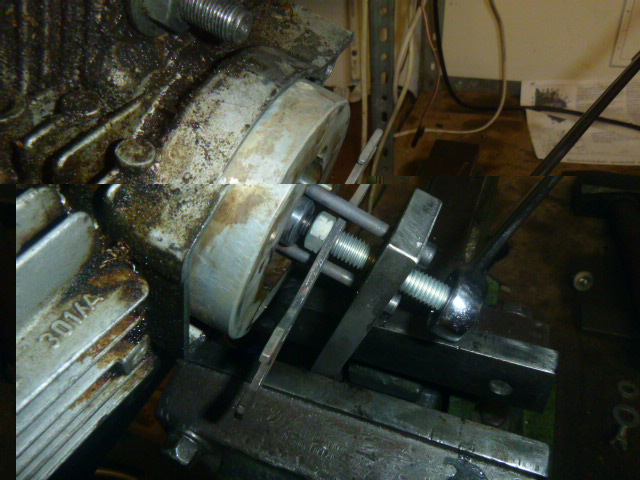 Dazu habe ich einen erheblich stabileren Abzieher gebaut und den in den Schraubstock gespannt.
