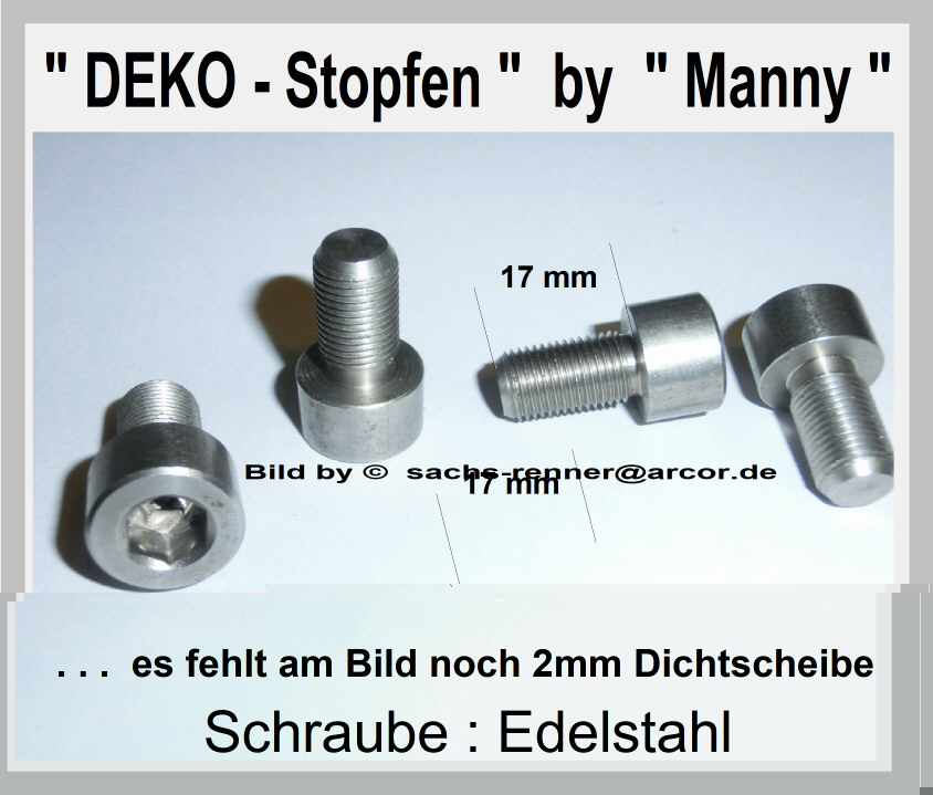 Whow, (17mm Gewinde) saubere Arbeit! Dient beim Buckelkolben auch gleichzeitig als Kolbenstopper.? Lg. Moppel