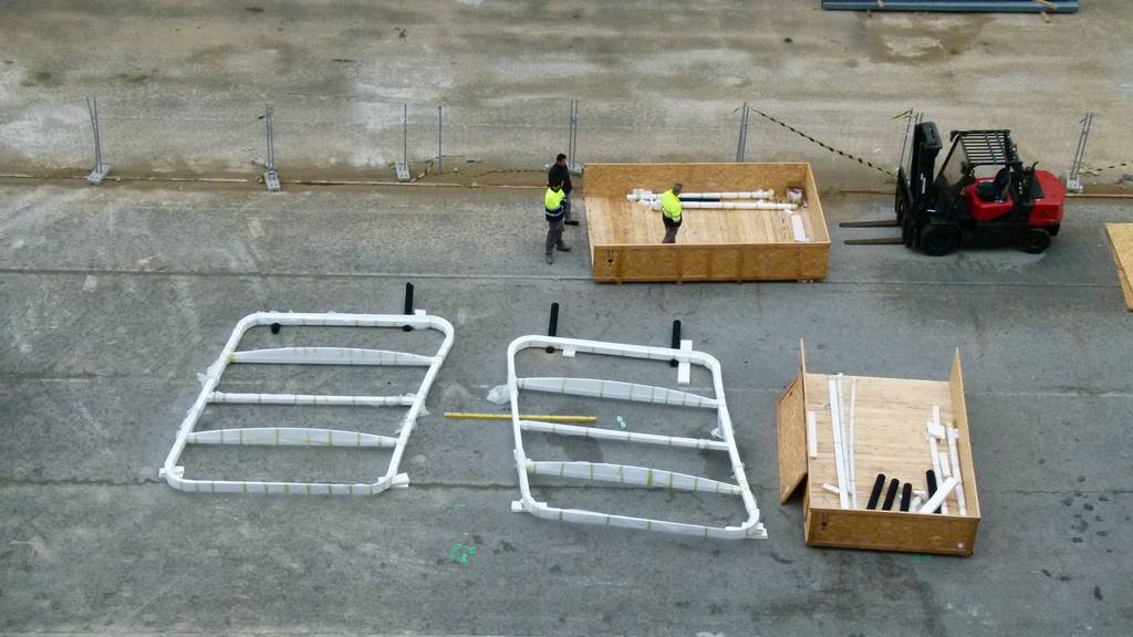 . . . und auf der Fahrt nach Barcelona haben wir gesammelt uns einen Grill und 10 Rinder auf's Pooldeck liefern / heben lassen