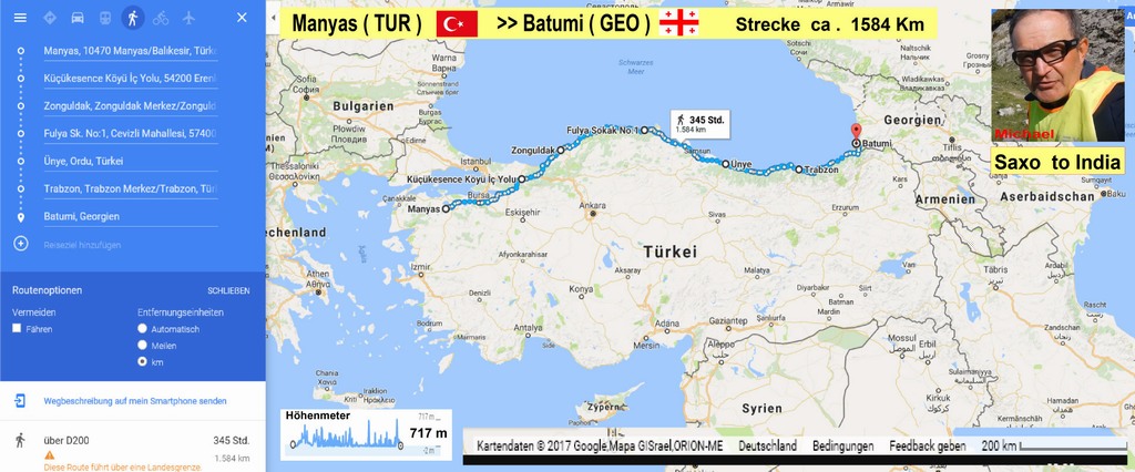 Genau, immer an der Schwarzmeerküste entlang , dann von Batumi Richtung Tiflis und dann nach Armenien und in den Iran !