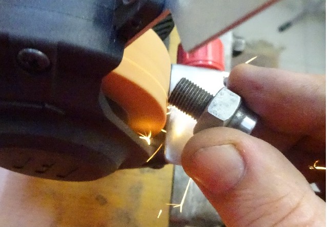 Man kann auch eine ausgemusterte Sachsonettenachse nehmen, Mit der Flex, oder wenn nicht so hart, mit einer Metallsäge absägen, Mutter fest draufschrauben, auf Länge 11,5 absägen, Gewindeenden schleifen . Kufperdichtring draufstecken, am besten noch Kupferpaste drauf.