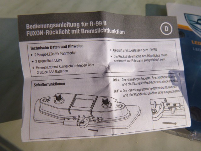 Re: Rücklicht mit Bremslichtfunktion von FUXON, ein Fehlkauf