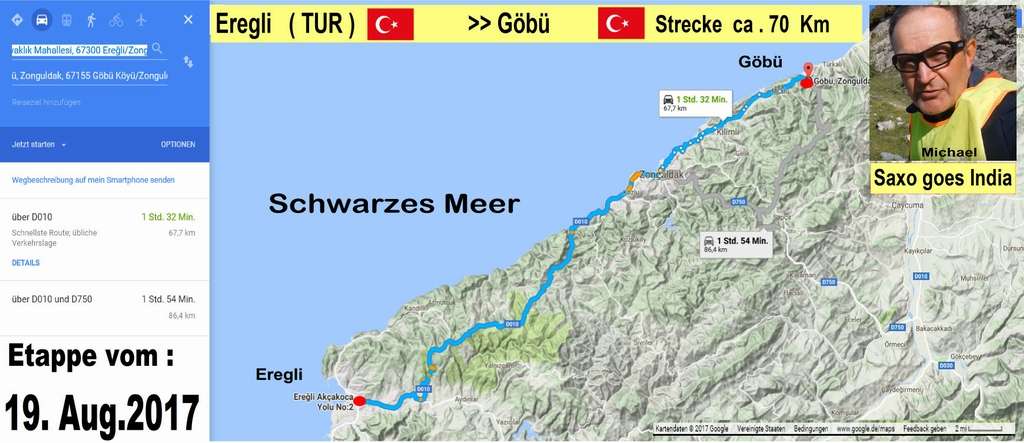 Nach ca 138 Km von Sakarya ist Michael am Küstenort Eregli gegen 18 Uhr angekommen.