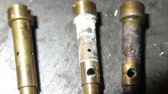 Hier Bilder von Düsennadeln: 1 x gut, 2 x schlecht.