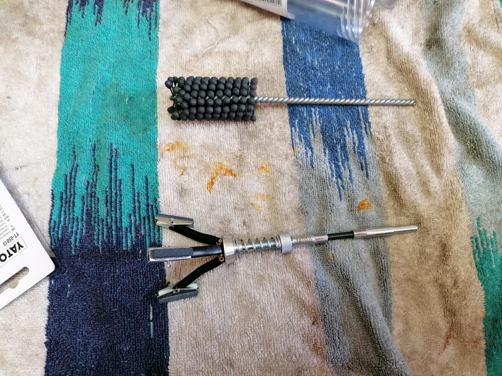Gehont habe ich mit einer 32mm-35mm Bürste, da ich kein honöl hatte habe ich einfach mein 2-Takt Öl genommen. Das ganze erstmal an einem kaputten Zylinder getestet, dabei rieselte erstmal gut wsa von der Bürste ab also nicht erschrecken. Die ersten drehung harkte es etwas an den überströmern also nicht wundern ist erst etwas ruckelig bis die Bürste etwas granulat verloren hat. Nachdem ich dann ein wenig am kaputten Zylinder üben konnte ging es ganz gut. Wichtig ist den Bohrer langsam laufen zu lassen und gleichmäßig rein und raus, wenn du das zu schnell machst schleifst du den Zylinder runter und hast keinen Kreuzschliff.