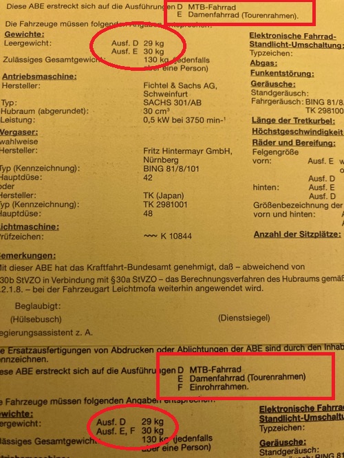 Ich muss die ABE mal mit meiner anderen zu Hause vergleichen, ich glaube die haben den Aufbau etwas verändert.