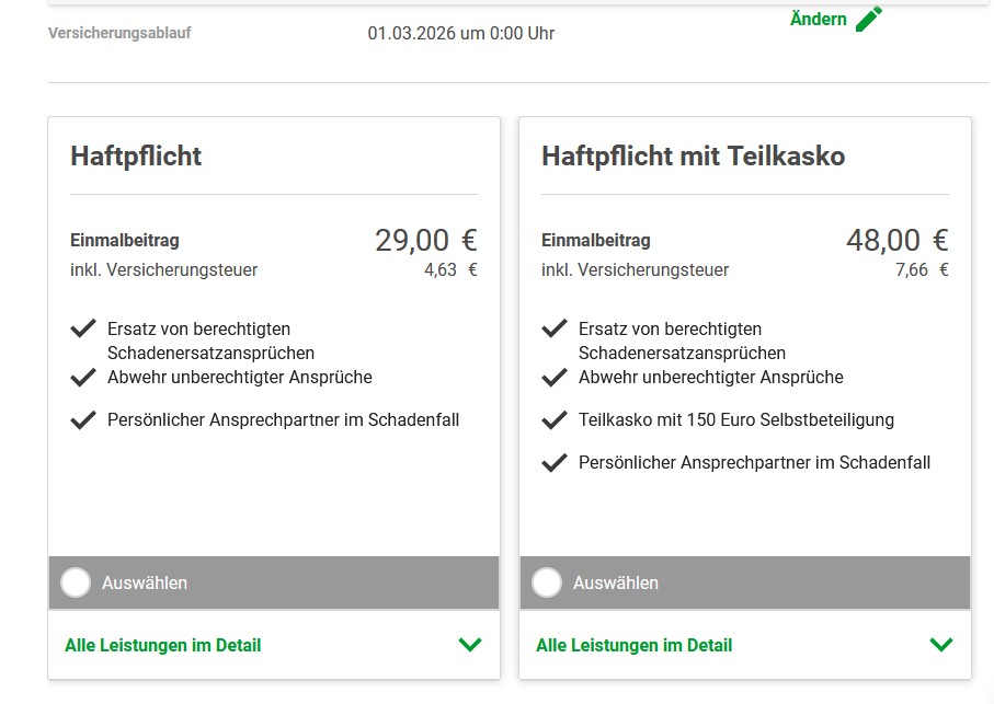 Bei der LVM kostet die Versicherung 48€ mit Teilkasko, incl. Blechschild.