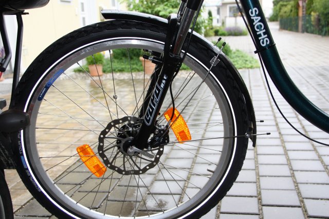 Des weiteren habe ich einen MTB-Tourenlenker mit geänderten Vorbau, einen Naben-Dynamo mit Scheibenbremslaufnahme montiert
